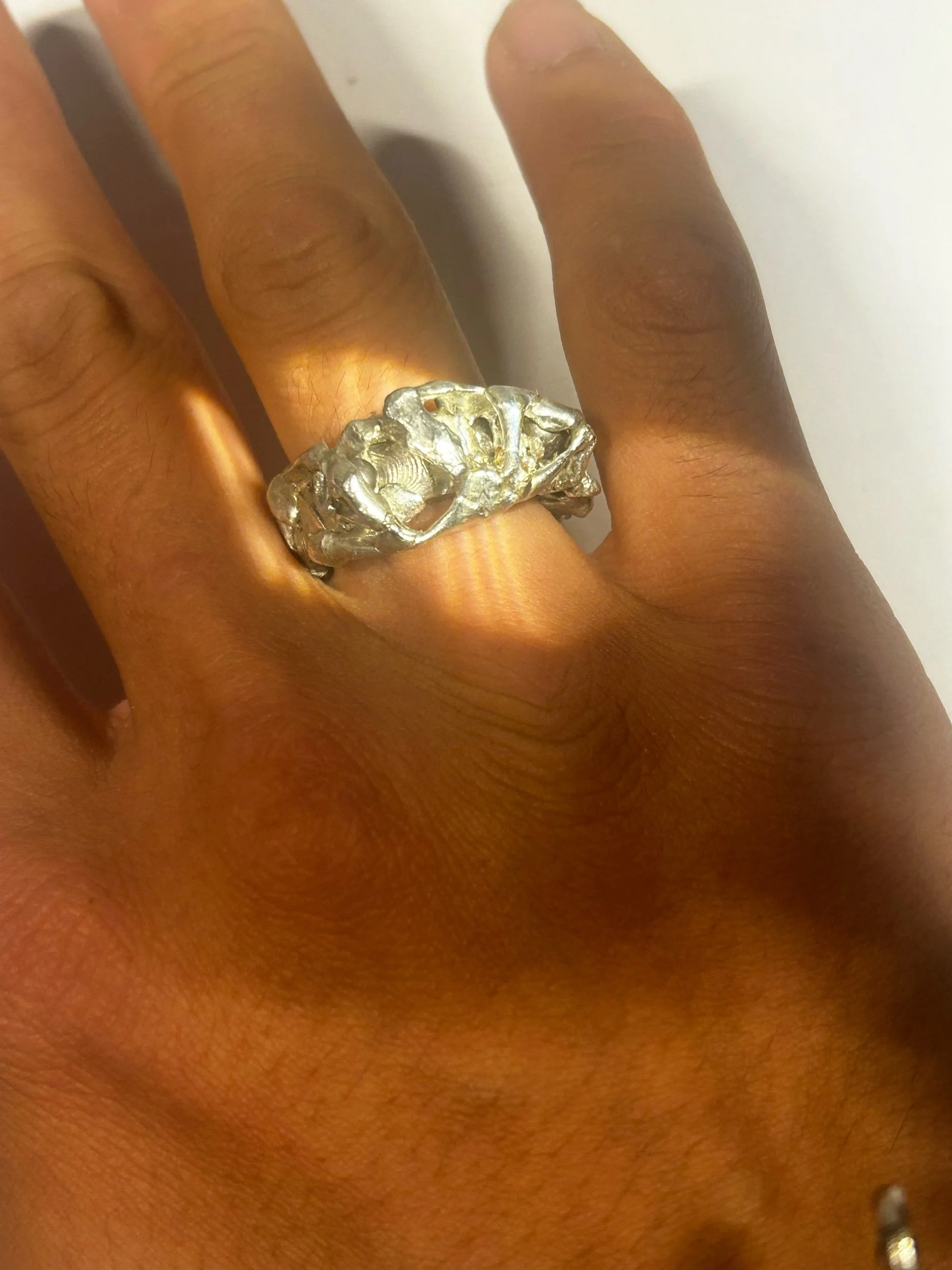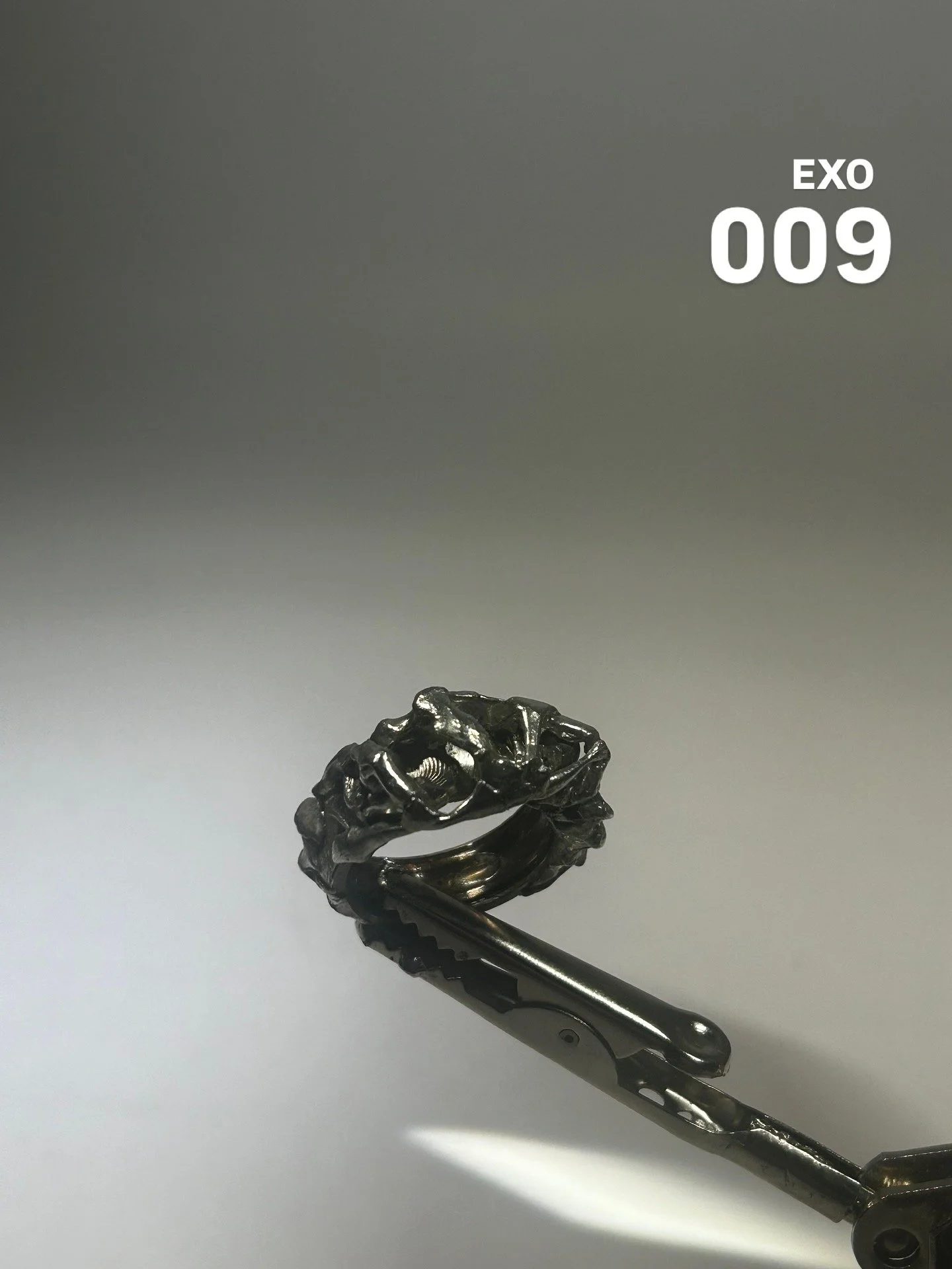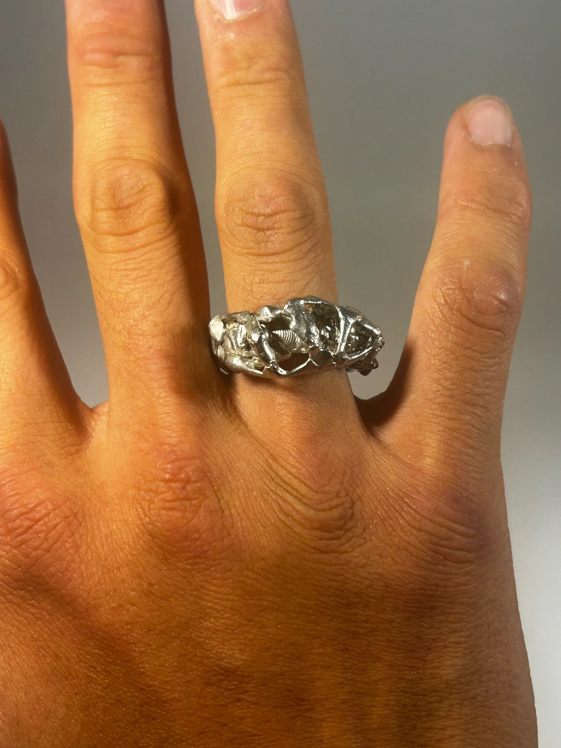 Shop › E.X.O! Image 1 of 4 Image 2 of 4 Image 3 of 4 Image 4 of 4 E.X.O! $55.00 A abstract skeletal ring.Upcycled from worn skateboard bearings Hand soldered with silver tin alloy. Quantity: Add To Cart Added! A abstract skeletal ring.Upcycled from worn skateboard bearings Hand soldered with silver tin alloy.